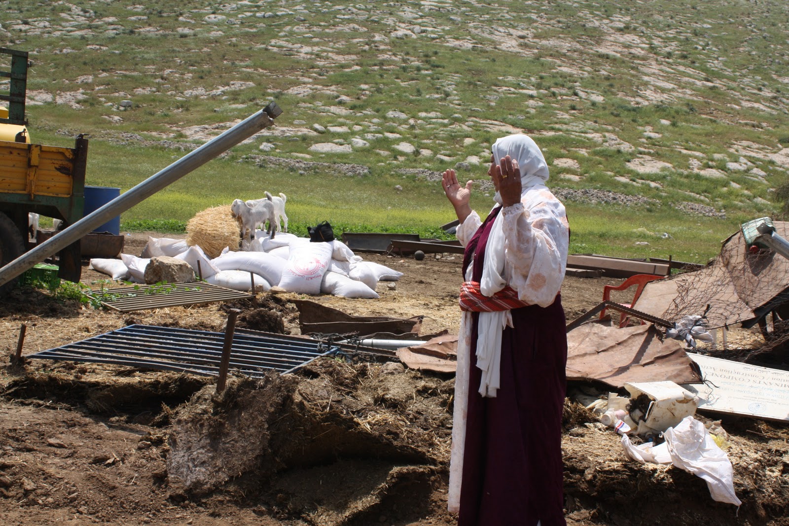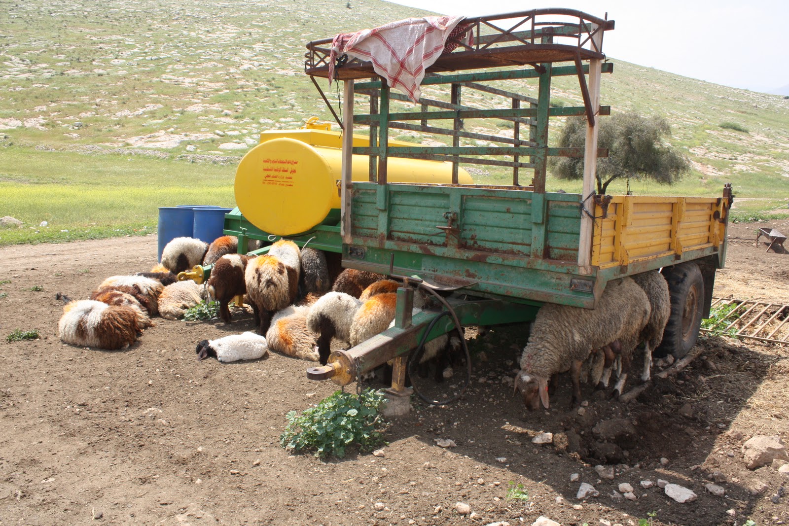 The animals were all crowding under the tractors and water tanks to try to find their own shade. As well as the animal shelters, the army also destroyed the small kitchen of a family with a young baby, aged just 20 days old. You can more information about the demolition orders received at Al Samra at www.jordanvallysolidarity.orghttp://www.jordanvalleysolidarity.org/index.php?option=com_content&view=article&id=210:demolitions-threatened-in-khirbet-samra&catid=15:2010&Itemid=21