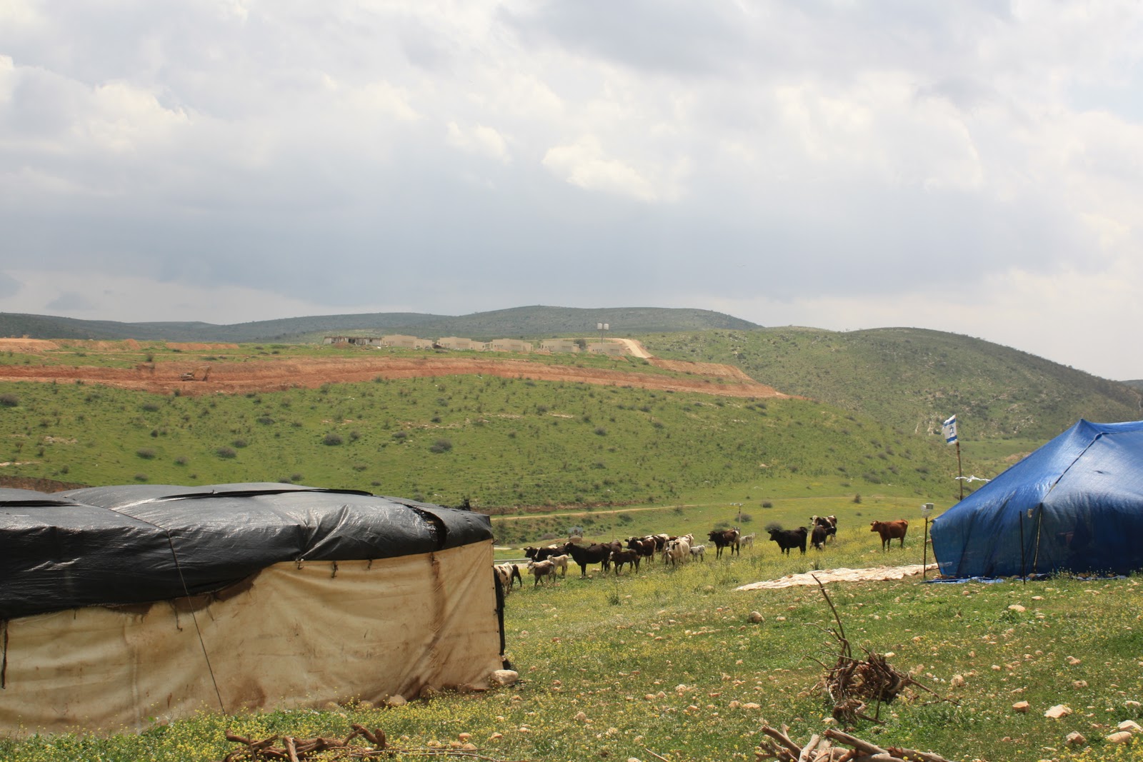 Tuesday 22nd March: The following night around 100 settlers from Maskiyyot came and erected a tent right next to the family home, terrifying the family. The army arrived at the same time, looking on and making no attempt to stop them………..